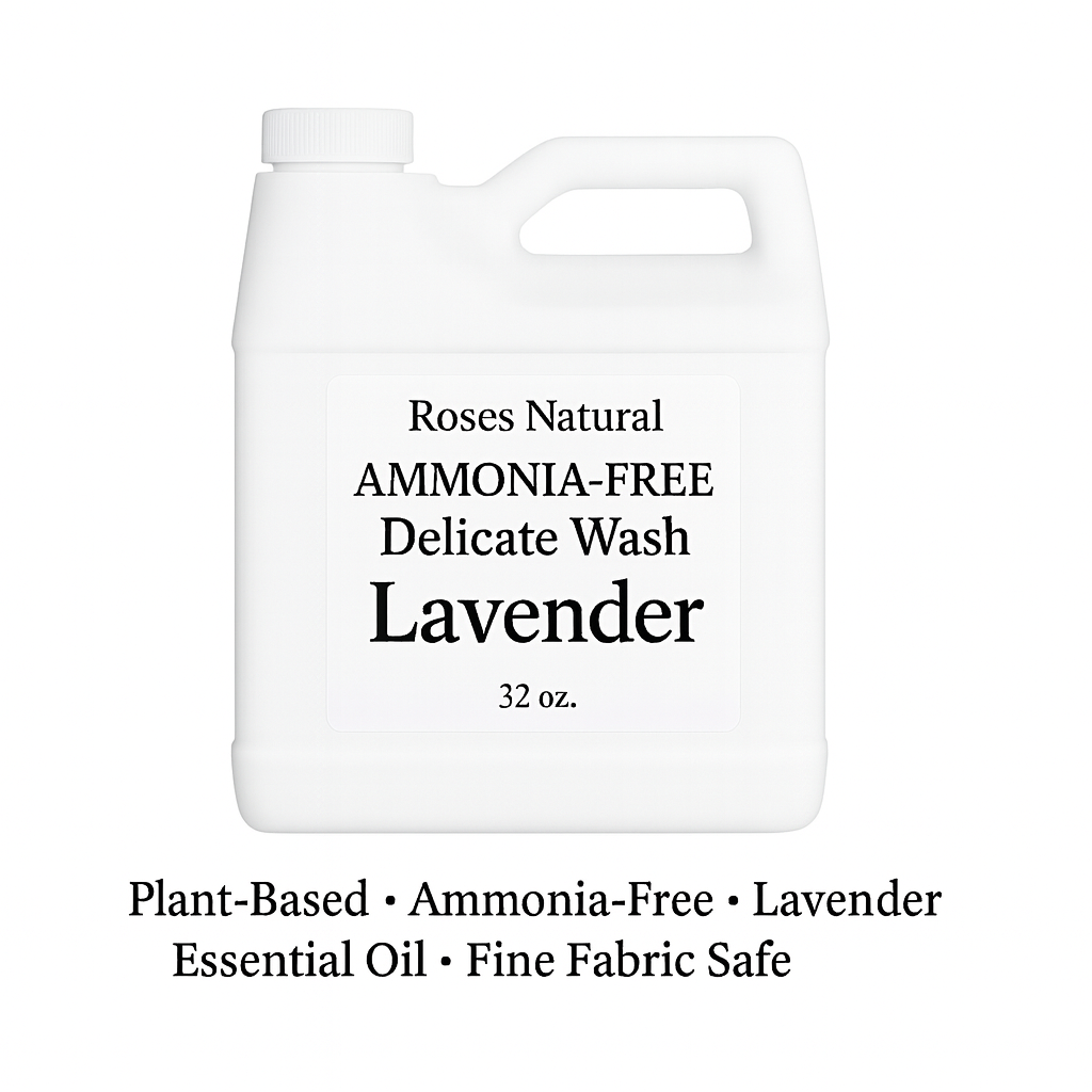 Give your delicate garments the care they deserve with Roses Natural Ammonia-Free Delicate Wash. Handmade with natural surfactants, lanolin, and lavender essential oil, this gentle yet effective formula cleans without harsh chemicals, keeping your fabrics soft, fresh, and beautifully maintained.